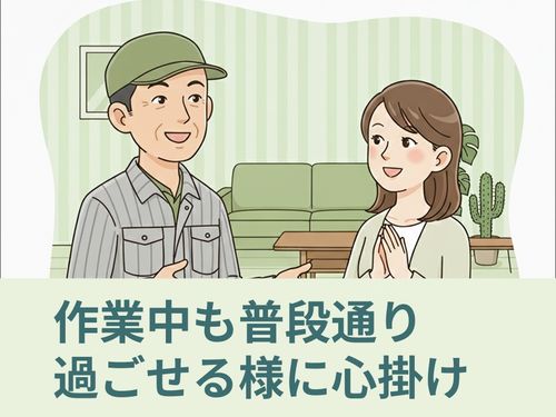 ・お客様ご不在時のサービスは行っておりませんが、作業中の外出は可能です。作業前と作業後には必ずお立合いをお願いしています。