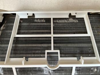 2年ほどクリーニングをおこなっていない室内機の熱交換部分です。