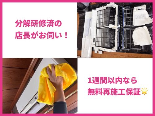 実績5000台以上、分解研修も済ませております。女性ならではの、細かい所まで綺麗に清掃いたします!!