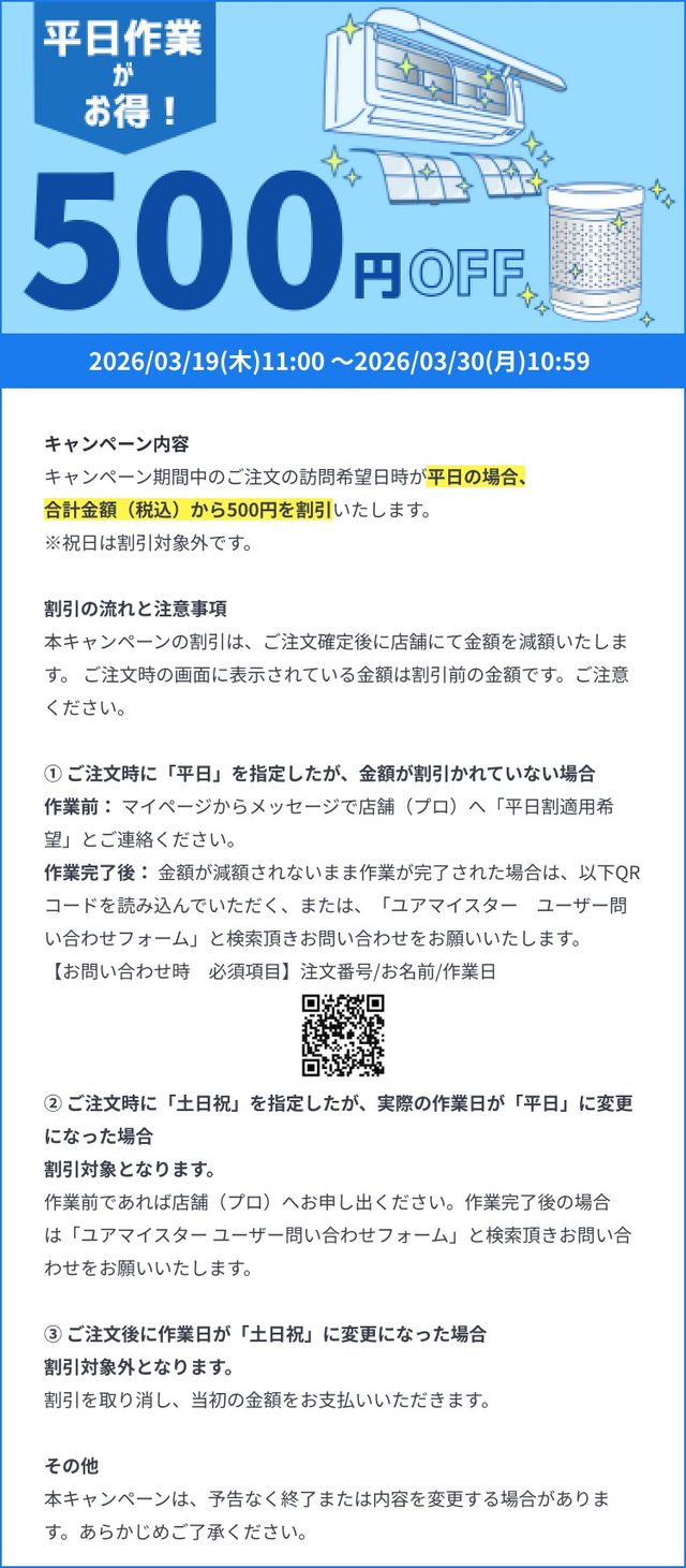 エアコンの使い方(カビをうまないための対策等)についても丁寧に教えていただき、非常にありがたかったです。