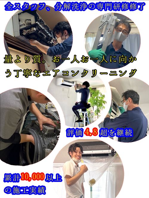 事前の連絡のやりとり、お掃除の仕方、応対など全てとても丁寧で、エアコンもとても綺麗にしてもらいました。