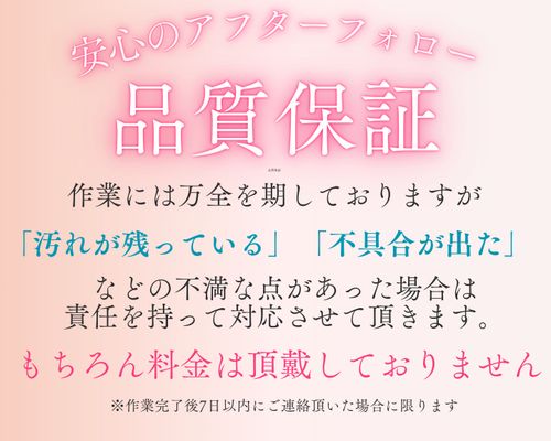 ★思いを込めたお掃除サービスを無料プレゼント ★おもてなしの精神で丁寧で誠実な対応 ★独自の品質保証 汚れが残っている場合、1週間以内のご連絡で無償で再清掃 ★損害保険加入済みで機器の故障時も安心