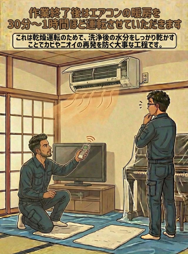 作業内容の説明がとても分かりやすく、今後のエアコン選びのポイントまで丁寧に教えていただきました。
