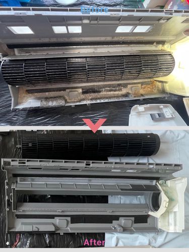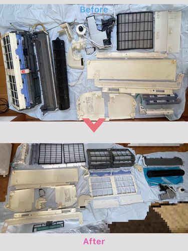 汚れに対する追加料金一切なし!体にやさしい植物洗剤を主に使用し、お子様、ご高齢の方、ペットがいるご家庭でも安心していただけます✨ エアコン分解クリーニングになります。