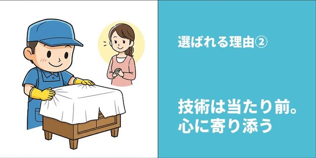 清潔感のある身だしなみやスリッパ持参などの基本的なマナーはもちろん、作業前後の丁寧なご説明で、お客様のご不安を一つひとつ解消いたします。