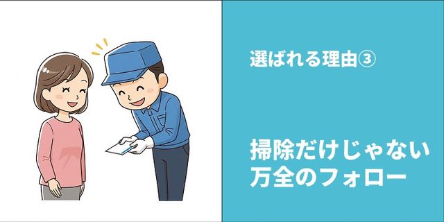 作業完了でおしまいではなく、作業後も定期的にヒアリングなど実施することで、再発させない防止策に重点を置いております。