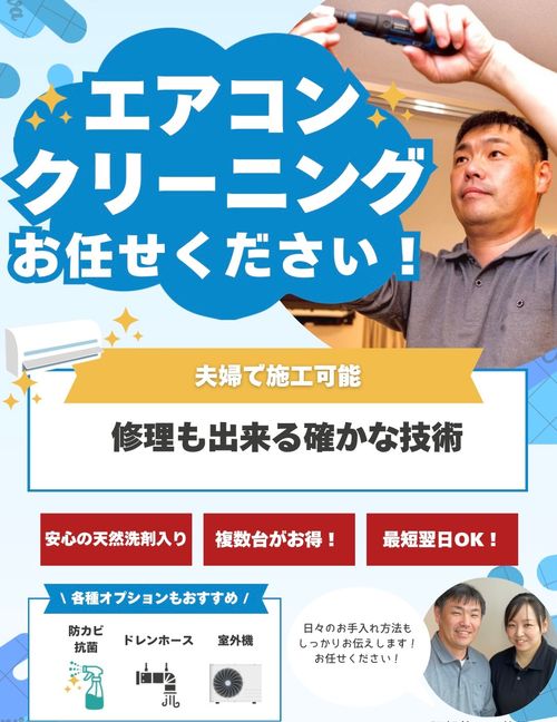 我が家にはエアコン3台ありますが、リビングの1台は去年クリーニングをお願いしました。しかし1年後の最近、埃のようなカビの様な黒い汚れが気になり残りの2台も一緒にクリーニングしてもらいました。スタッフの方も感じが良く、安心してお任せすることができました。作業中もみるみるうちに黒い汚水がでて、こんな空気吸い込んだら体に悪そう⋯と思いました。いろいろお話をしたり、手入れの小話なども所々教えていただき、もう毎年クリーニングしようと思いました。