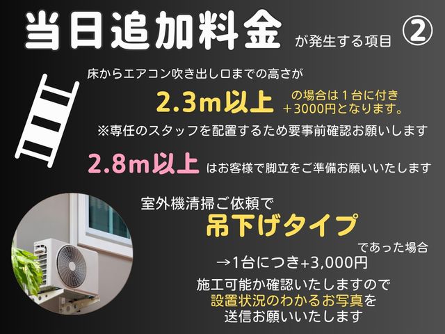 設置高3m以上のエアコンは安全上、施工不可となります。