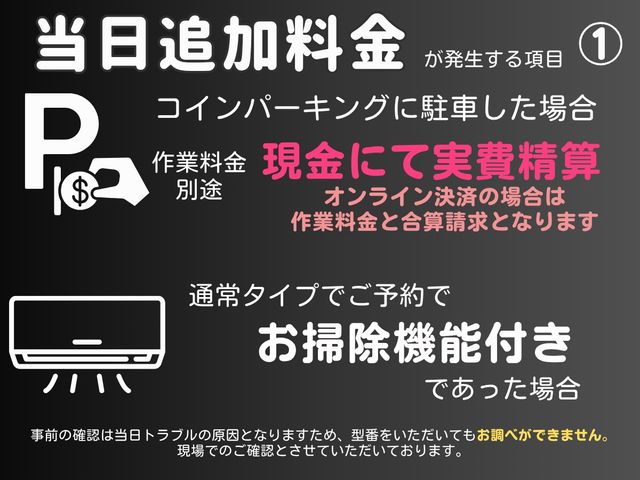 なお、訪問日当日にプロが現場を確認した結果、お客様・プロ双方の事情によらず作業ができない場合は、最低料金として合計料金の50%を頂戴します。