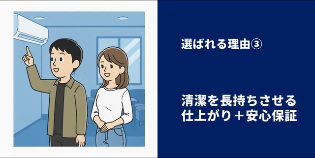 分解洗浄でカビやホコリを根本から除去し、施工後は清潔を長持ちさせるアドバイスもご案内。