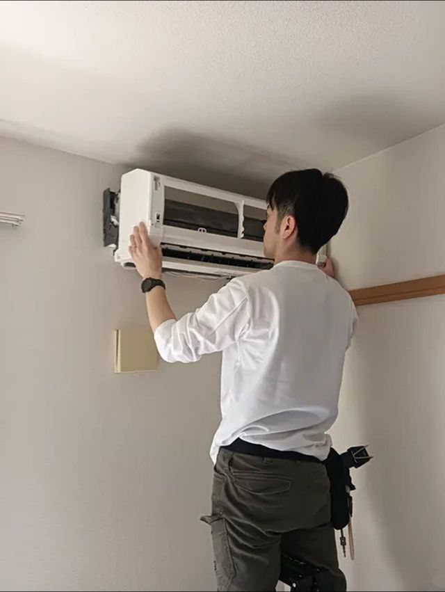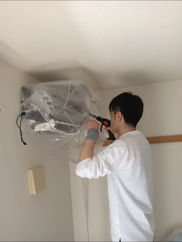 事前にお客様にはエアコン下には最低でも畳半畳程度のスペースの確保をお願いしておりますが、家具の移動がお客様自身では難しい場合は、当日移動をお手伝いさせて頂いたり、どうしても家具の移動が難しい場合はしっかりと養生後の作業をしております。臨機応変に対応させて頂きますのでご安心ください。