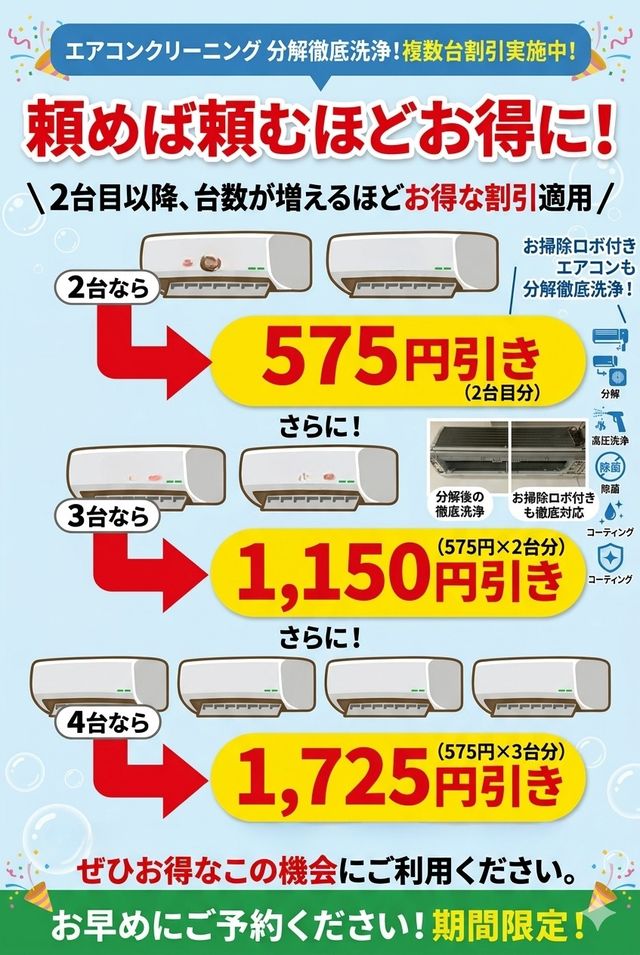 新生活応援🌸【4月の新規出店価格】安心の自社施工✨複数台割✨エアコンクリーニング専門店✨
