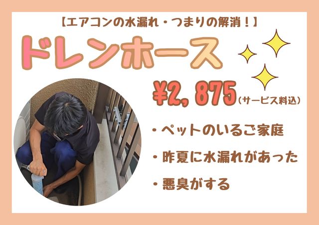 エアコン、室外機、ドレンホースを依頼