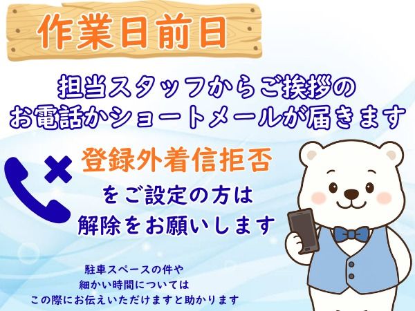 ・作業箇所にトラブルがある場合は作業を承れないことがあります。