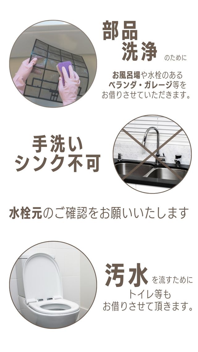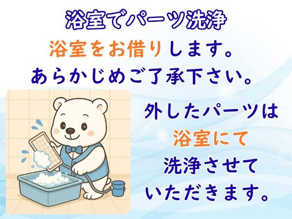 ・専用の道具・洗剤を使用させていただきますので、設備の劣化などで塗装がはがれてしまう場合があります。ご容赦ください。