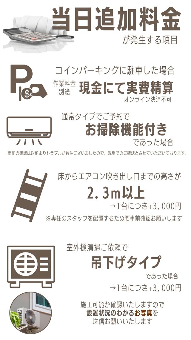 なお、訪問日当日にプロが現場を確認した結果、お客様・プロ双方の事情によらず作業ができない場合は、最低料金として合計料金の50%を頂戴します。