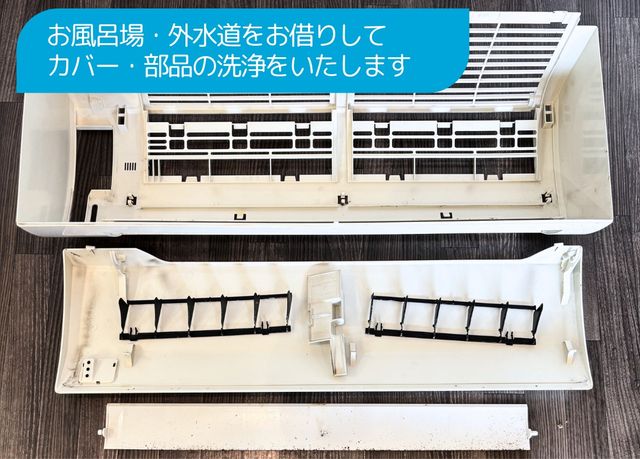 エアコンクリーニングの際に、分解したエアコンの部品は、どこで洗浄しますか?お風呂場を使ったりしますか?