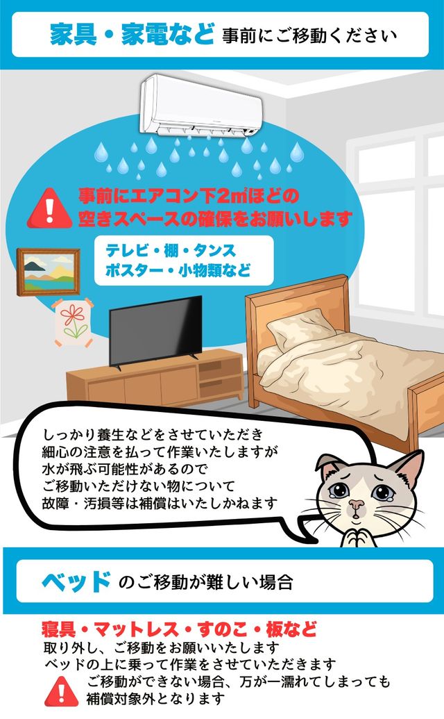 ◆作業時間短縮にもなりますので、清掃箇所2m四方ほどのスペースの確保をお願いします