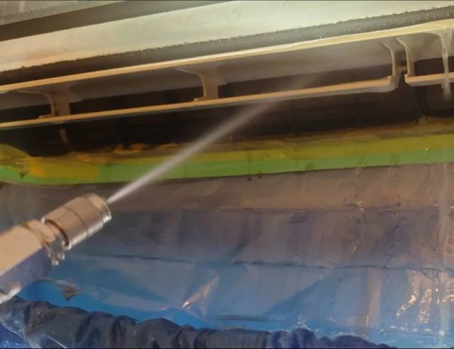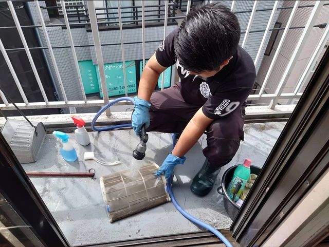専用機材と薬剤で熱交換器・ファンを洗浄します。