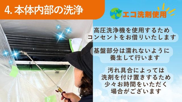 作業時間が異なるのは、業者ごとにクリーニング方法や使用する機材が違うこと、スタッフの経験や人数体制によって進め方が変わること、そしてエアコンや設備の汚れ具合や設置環境によって必要な工程が増えることが理由です。私たち「笑がお吉日株式会社」では、ただ早く終わらせることよりも、安心して快適に過ごしていただける仕上がりを大切にしています。お客様に「頼んでよかった」と思っていただけるよう、誠実に作業時間をお伝えし、丁寧に対応いたします。