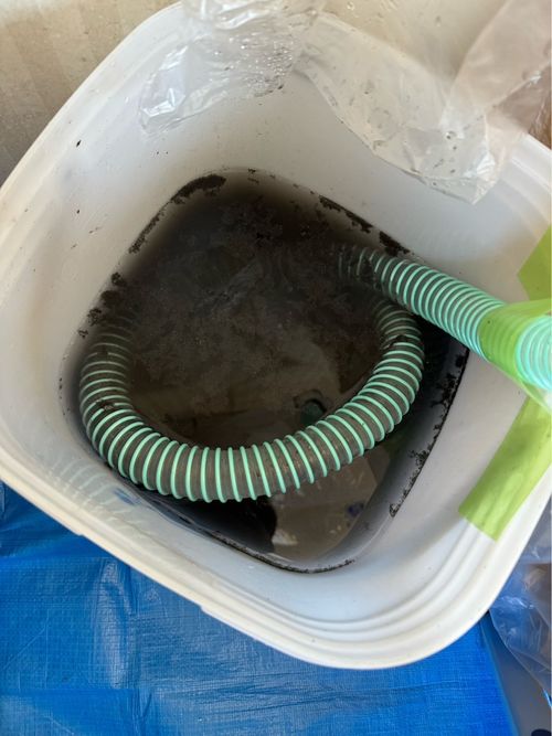 ドレンパン(冷房の運転時に生じる結露の水分を受け止めるパーツ)を洗浄します。