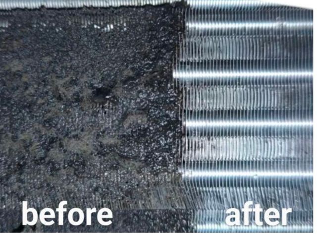 専用機材と薬剤で熱交換器・ファンを洗浄します。