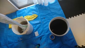 洗浄汚水です。エアコン内部はこんなに汚れています