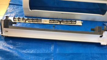 ※ドレンパンのこの汚れは、ドレンパンを脱着しないと熱交換器が密着しているので全く綺麗に洗えなくなってしまいます。
