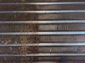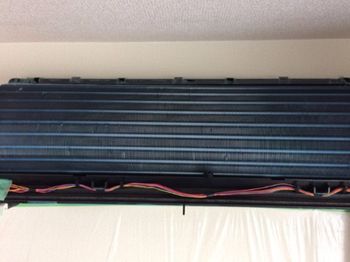分解してみると、熱交換器へホコリやカビがビッシリとついていました…。