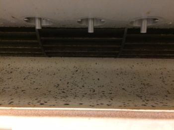 外装カバーは、ホコリやタバコのヤニによる黄ばみがあり、内部はホコリやカビがビッシリとついていました…。