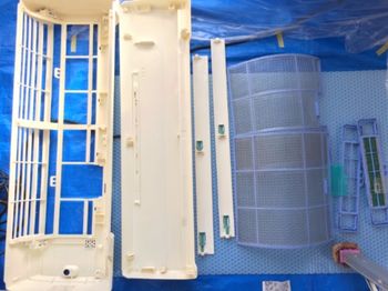 2004年製で年数が経過していることもあり、エアコン内外のホコリ、内部や吹き出し口のカビ発生が酷い状態でした。