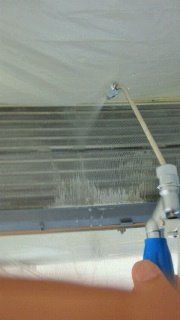 エアコン内部に洗浄液塗布中