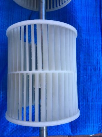 【2・3番目の画像】は、エアコン内部全体(熱交換器)と送風ファンの画像です。