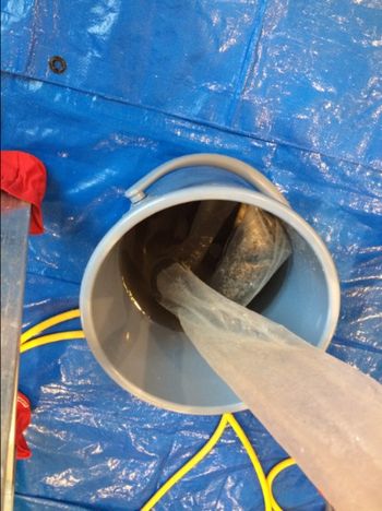 高圧洗浄すると、カビ汚れが一気に洗い流されていきます。