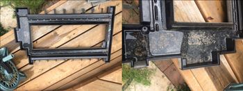 分離させたドレインパンには 汚れのヌメリやカビが付着しています。