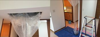 全体をビニールで養生して高圧洗浄に備えます。