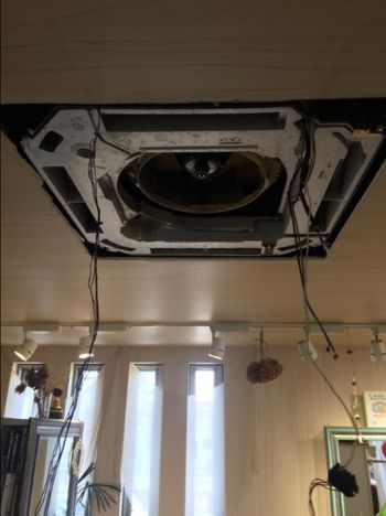 続いてドレインパンを取り外して 熱交換器(アルミフィン)を露出させます。