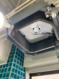 天井埋め込み(業務用エアコン含む)はエアコンの真下に脚立を立てての分解からスタートします。