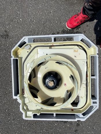 黒い塊がドレンポンプ内に入ってしまい。排水が吸えなくなってしまったのあが原因でした。