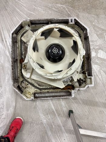 熱交換器にカビがびっしりでしたが、洗浄後はきれいになり、黒いカスも出なくなりました。