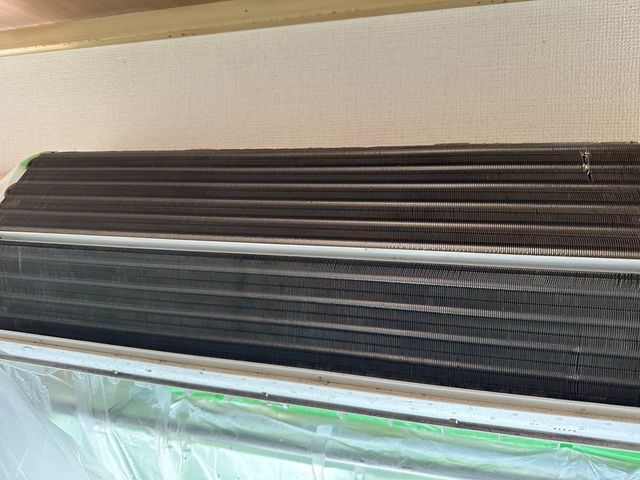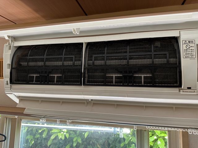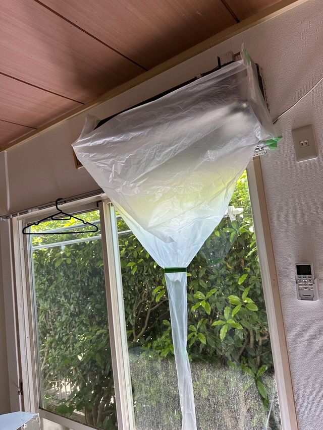 エアコンの下に脚立を立てて作業しますので脚立を立てられるスペースの確保をお願いしています。