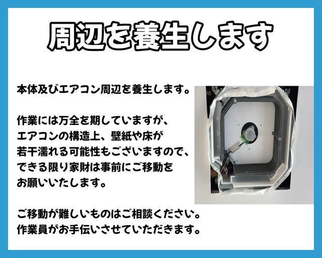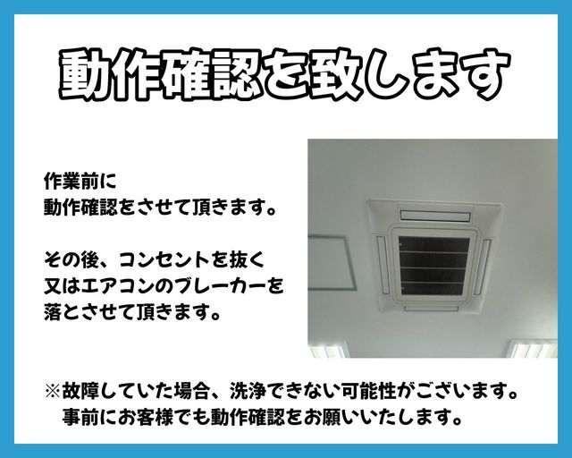 ※エアコンの故障やエラーがでているなどの不具合がある場合はクリーニングいたしかねます。