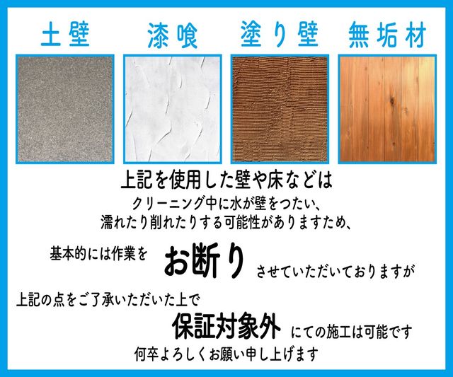 ※土壁、漆喰、塗り壁または無垢材を使用した壁や床などは、