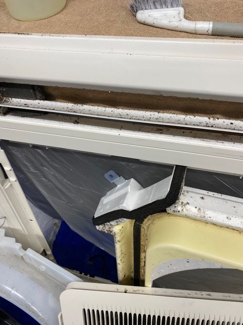 ドレンパン(冷房の運転時に生じる結露の水分を受け止めるパーツ)を洗浄します。