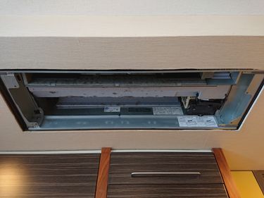 飲食店で上を見上げるとエアコンの吹き出し口は黒い斑点でカビだらけ