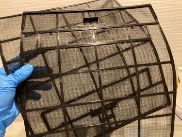 エアコン内部を乾燥させている間に、取り外したフィルター、カバー、ユニットなどすべての部品を綺麗にします。部品の洗浄には、浴室やベランダを使います。高圧洗浄機で細部のホコリまで丁寧に洗い流します。高圧洗浄機では落ちない細かい部分の汚れは、ブラシで綺麗にしていきます。
