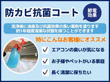 抗菌コートはカビや細菌の繁殖を抑えてくれる、消臭及び抗菌効果の高いコーティング剤です。