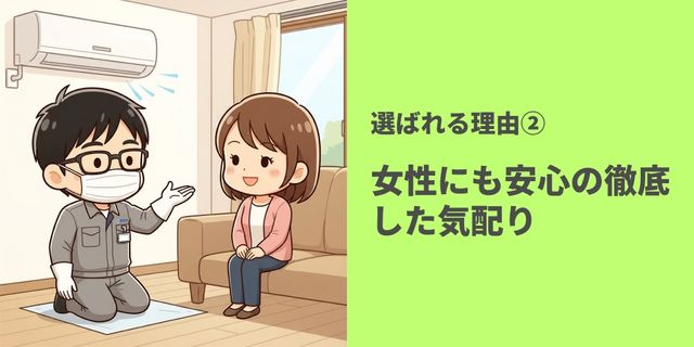 ご自宅での作業だからこそ、お客様に安心していただくための配慮を徹底しています。