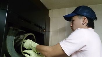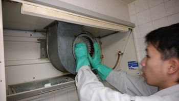 レンジフード分解クリーニング・レンジフードシロッコファン漬け込み洗浄
