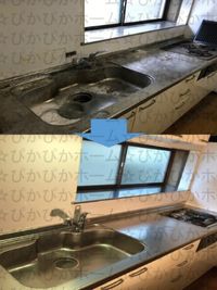 汚れに適した洗剤を使用します。水垢の特性、素材を考えた上で対応します。たまにプロが使う「魔法の洗剤」の様なもので何でも綺麗になるというイメージを持たれている方もいますが、そのようなものはありません。ですので、キッチンの水垢にはそれに適した洗剤で対応します。